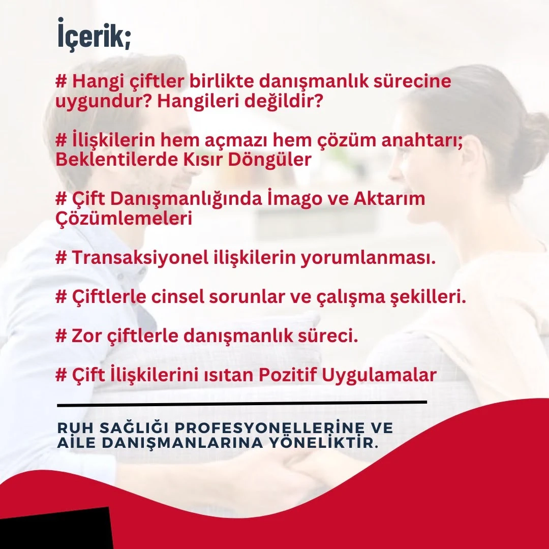 - İlişki dinamiklerini anlamak ve çiftlere bütünsel bir destek sunmak için tasarlanan bu eğitimle, iletişim ve empati becerilerinizi güçlendirin!
